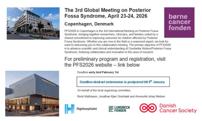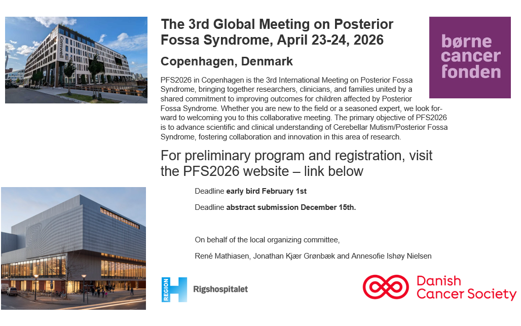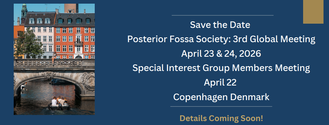————————————————————————————————————————————————The Posterior Fossa Society is a group of healthcare professionals interested in the study of post-operative paediatric posterior fossa syndrome (also known as posterior fossa syndrome or cerebellar mutism syndrome). Formed in 2014, our regular meetings are a forum for sharing research, forging collaborative working groups, and improving treatment of post-operative paediatric cerebellar mutism syndrome.